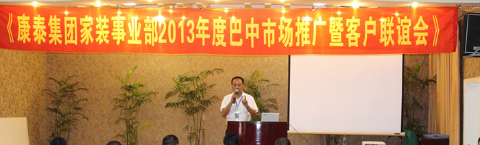 ??? 16日下午,“康泰集團(tuán)家裝事業(yè)部2013年度巴中市場推廣暨客戶聯(lián)誼會”在琴鶴苑召開。會議上,營銷中心總監(jiān)何朝暉向經(jīng)銷商們介紹了公司品牌營銷的戰(zhàn)略規(guī)劃。公司重視規(guī)模,通過品牌策劃拓展終端市場的各種政策與支持堅定了商家們與康泰共同發(fā)展的信心和決心。