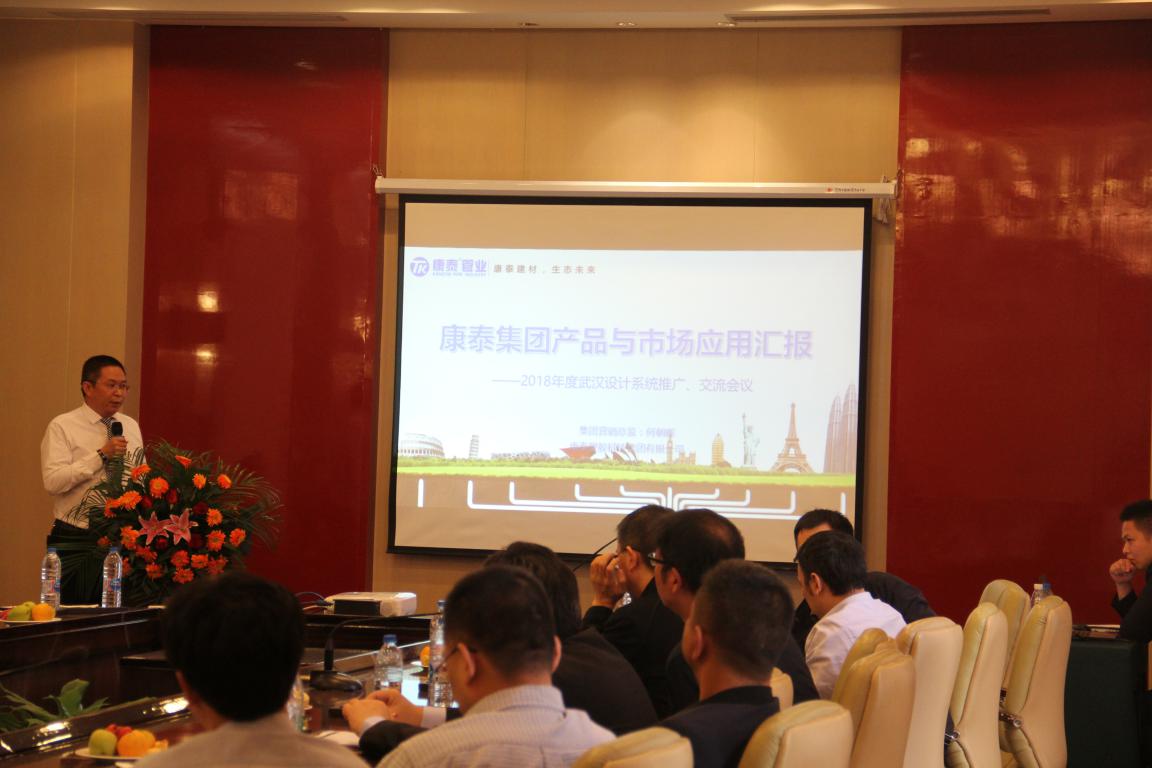本次會議是針對武漢設計系統(tǒng)開展的專場產(chǎn)品推廣、交流的會議,會上,康泰集團湖北分公司總經(jīng)理胡俊君首先發(fā)言,代表康泰集團對各位領導、專家、設計師的蒞臨表示了歡迎,對大家長期以來給予康泰集團的支持、幫助和理解表示了感謝。